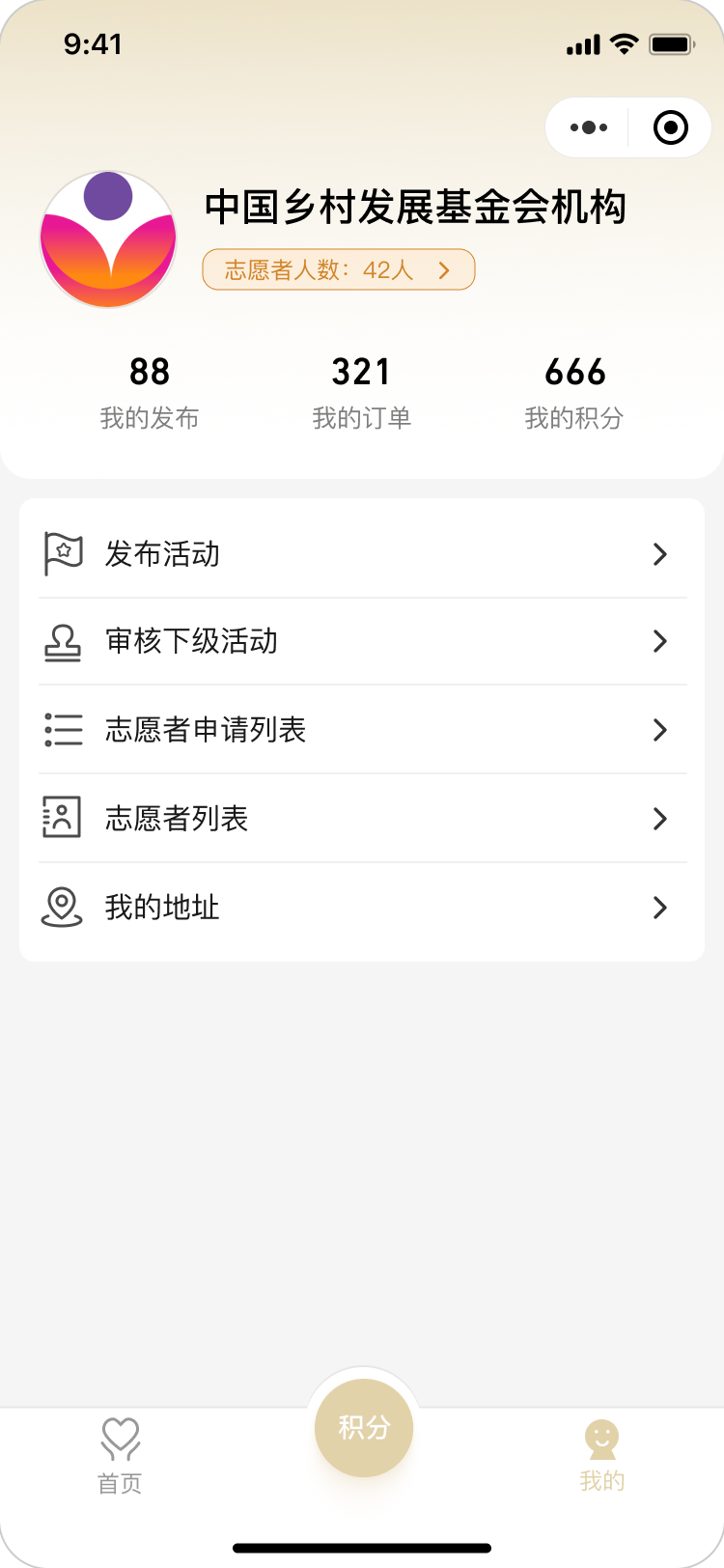 機構(gòu)人員申請入駐,發(fā)布志愿活動,線下參與活動。